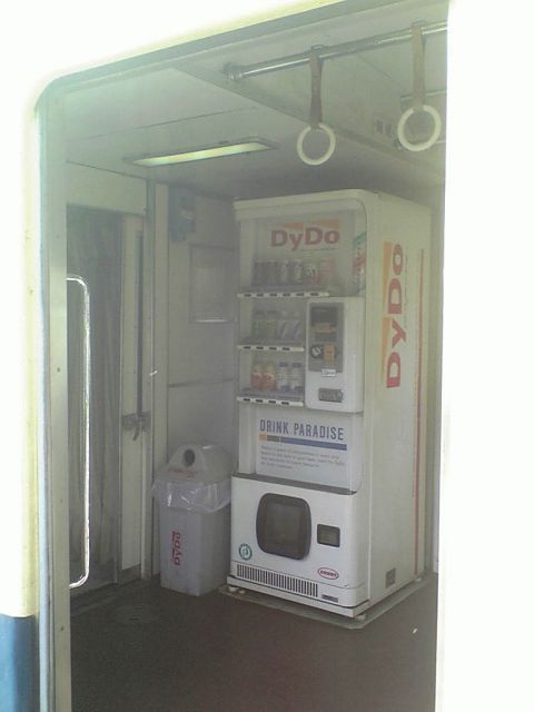 写真1:大井川鉄道の中には普通に大きな自動販売機が…。