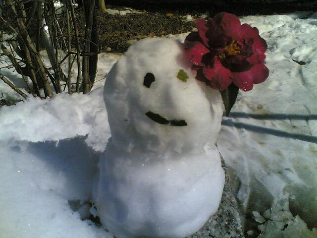 寮の出口は自転車が通れないようになってるので、その側に抜け口がある。結構な坂になってるので、おそるおそる通った。その時入院してる友人に写メールしようと思いつき、雪だるまを作った。撮った後それを出口に置いて買い物。